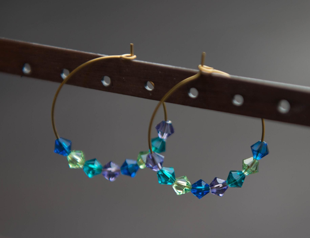 Boucles d'oreilles créoles en cristal violet vert turquoise
